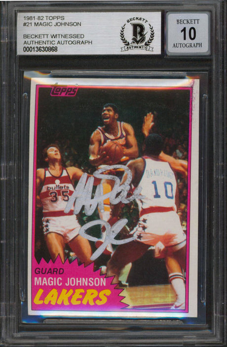 Lakers Magic Johnson Signed 1981 Topps #21 Card Auto 10! BAS Slabbed #13630868