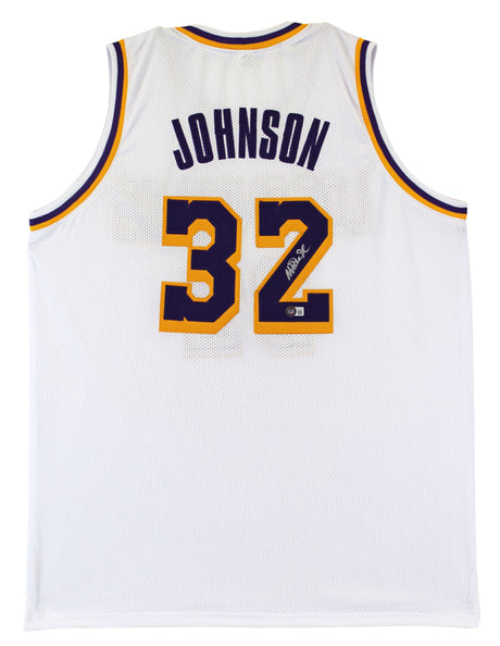 Magic Johnson Authentic Signed White Pro Style Jersey Autographed BAS Witnessed