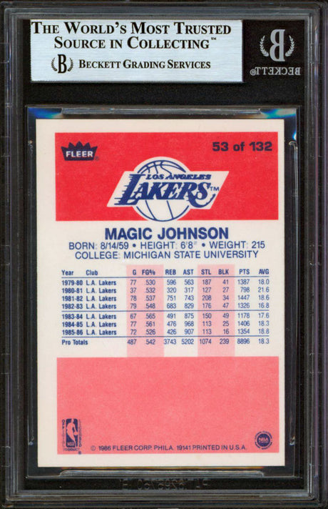 Lakers Magic Johnson Authentic Signed 1986 Fleer #53 Card BAS Slabbed