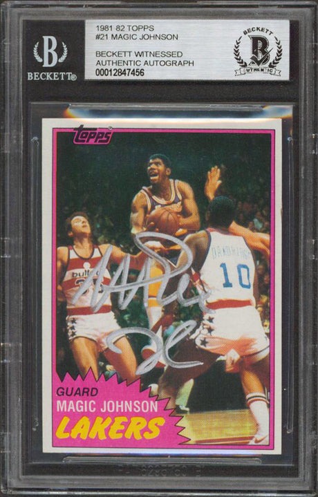 Lakers Magic Johnson Authentic Signed 1981 Topps #21 Card BAS Slabbed #12847456