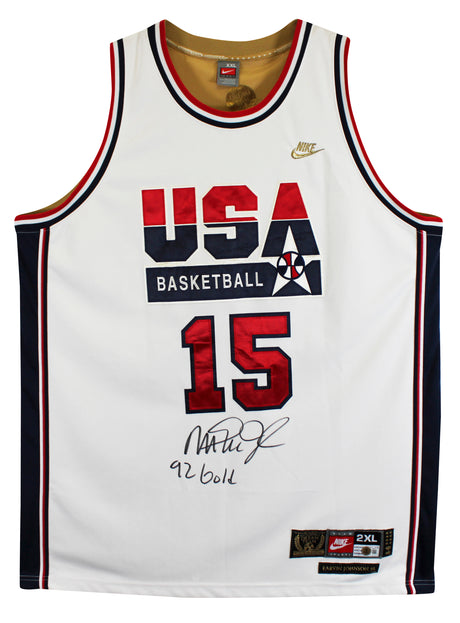Magic Johnson "92 Gold" Signed White Nike Team USA Jersey BAS Witness #3W387217