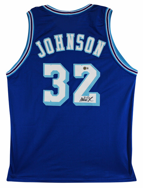 Magic Johnson Authentic Signed Blue Throwback Pro Style Jersey BAS Witnessed 2