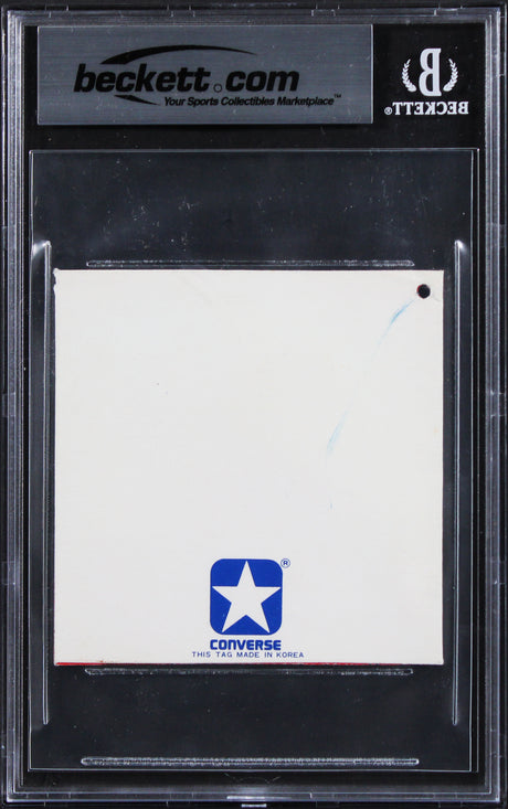 Larry Bird & Magic Johnson Signed 3x3 Converse Weapon Shoe Tag Auto 10! BAS Slab