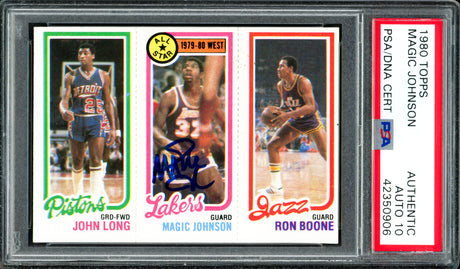 Lakers Magic Johnson Signed 1980 Topps #6 Rookie Card Auto 10! BAS Slabbed