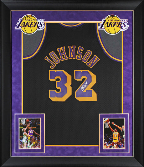 Lakers Magic Johnson Signed Black Two-Tone M&N HWC Swingman Framed Jersey BAS W