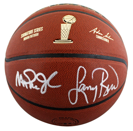 Magic Johnson & Larry Bird Signed Wilson Trophy Series Basketball BAS Witnessed