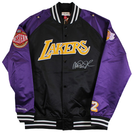 Lakers Magic Johnson Signed Black M&N Warm Up Jacket w/ Patches BAS Witnessed 2