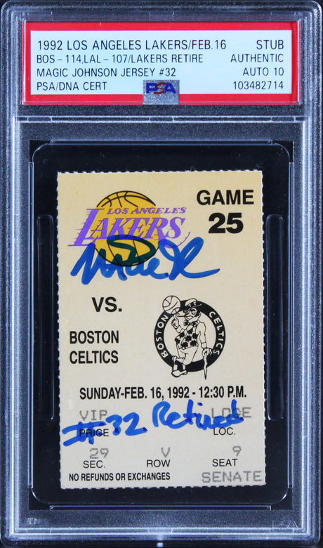 Lakers Magic Johnson "#32 Retired" Signed 2/16/1992 Ticket Stub Auto 10 PSA Slab