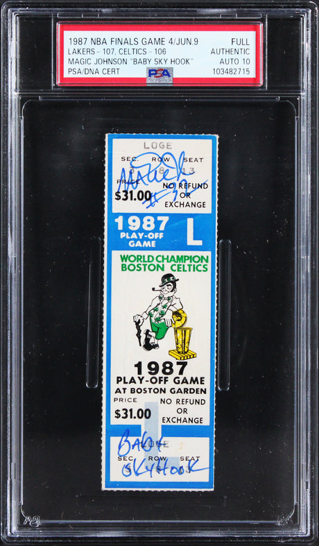 Magic Johnson Signed 1987 NBA Finals Gm 4 Full Ticket Stub Auto 10! PSA/DNA Slab
