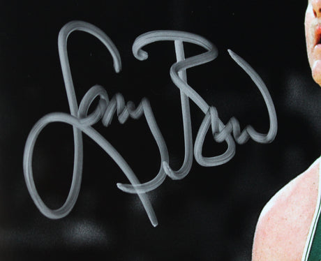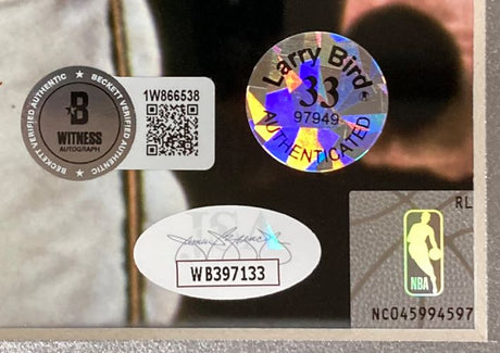 Larry Bird Magic Johnson Signed Framed 16x20 Celtics Shirt Pull Photo JSA+BAS