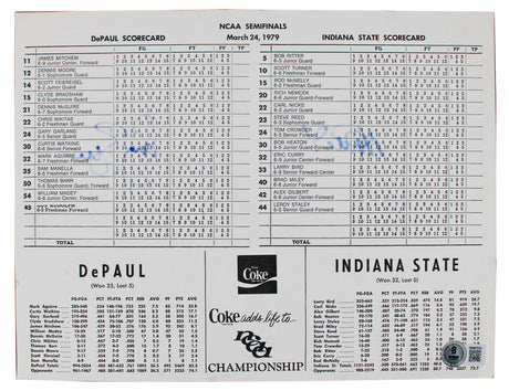 Magic Johnson & Larry Bird Signed 1979 NCAA Semi-final Scorecard BAS #1W867914
