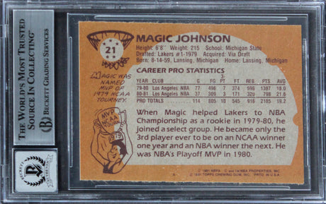 Lakers Magic Johnson Authentic Signed 1981 Topps #21 Card Auto 10 BAS Slabbed