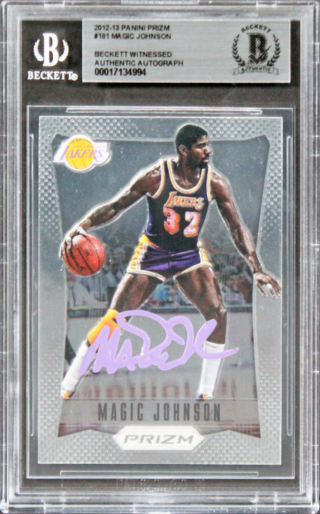 Lakers Magic Johnson Authentic Signed 2012 Panini Prizm #181 Card BAS Slabbed
