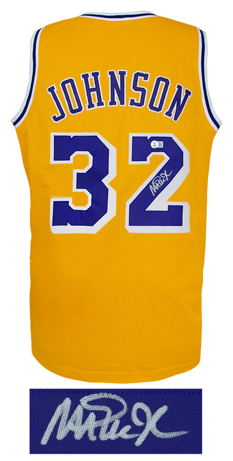 Magic Johnson Gold T/B Custom Basketball Jersey - (Beckett COA)