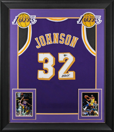 Magic Johnson Authentic Signed Purple Pro Style Framed Jersey BAS Witnessed 2