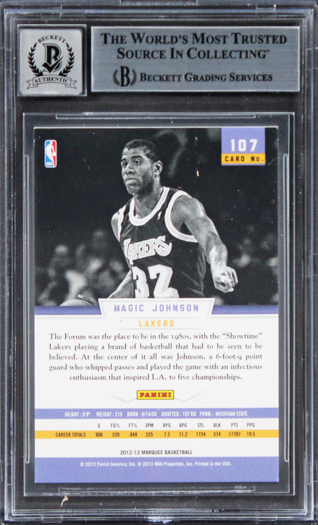 Lakers Magic Johnson Signed 2012 Panini Marquee #107 Card Auto 10! BAS Slabbed
