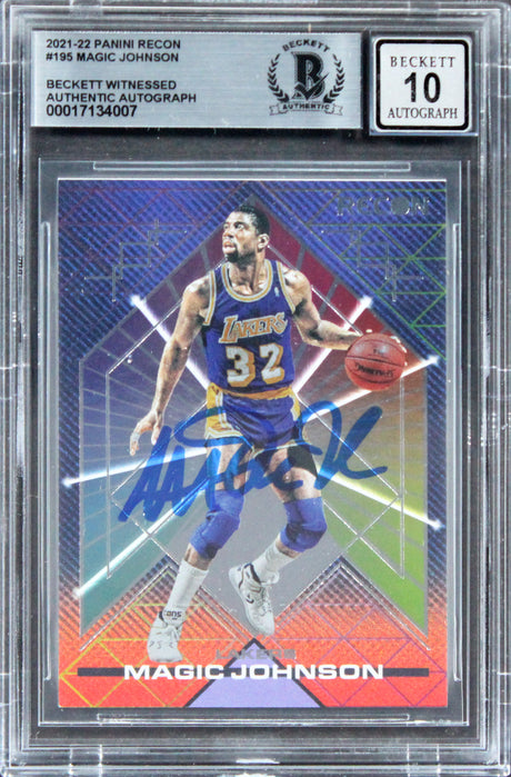 Lakers Magic Johnson Signed 2021 Panini Recon #195 Card Auto 10! BAS Slabbed