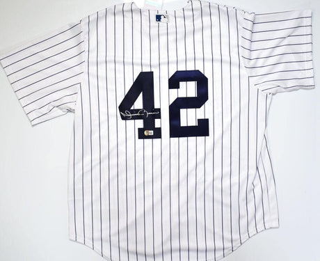 Mariano Rivera Authentic Signed White Pinstripe Pro Style Jersey BAS Witnessed