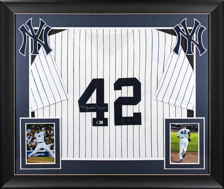 Mariano Rivera Authentic Signed White Pinstripe Pro Style Framed Jersey BAS Wit