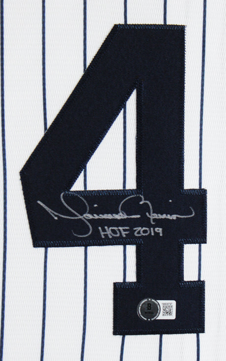 Yankees Mariano Rivera "HOF" Signed White Pinstripe Majestic Framed Jersey BAS W