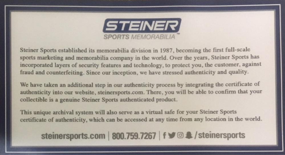 - Verified Authenticity – Authenticated by Steiner Sports, featuring a uniquely numbered, tamper-proof hologram that can be verified in our online database.