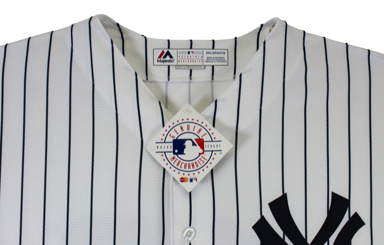 - Official Majestic Cool Base Jersey: Features Yankees' classic white pinstripe design.