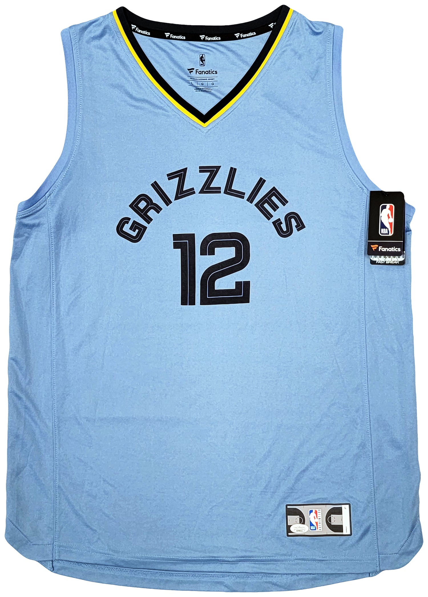 Own a piece of Memphis Grizzlies history with this Light Blue Fanatics Memphis Grizzlies Jersey, hand-signed by Ja Morant. A must-have for NBA fans and collectors, this jersey celebrates Morant’s incredible rookie season.