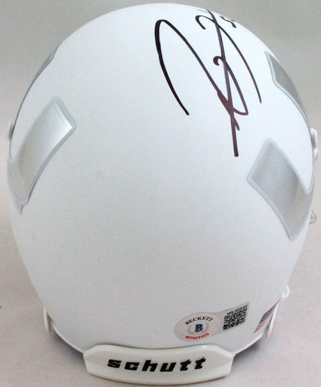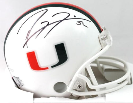 Ray Lewis Signed Miami Hurricanes White Schutt Mini Helmet- Beckett Auth *Orange