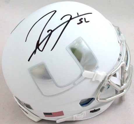 Ray Lewis Autographed Miami Hurricanes White Schutt Mini Helmet- Beckett W Holo