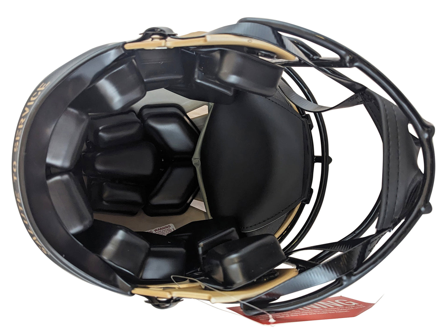 Own a piece of Dallas Cowboys history with this Autographed Alternate 2023 Salute to Service II Riddell Full-Size Speed Proline Helmet, personally signed by star linebacker Micah Parsons. This exclusive collectible is a must-have for dedicated Cowboys fans and memorabilia collectors. Encased in a UV-mirrored acrylic display case, this helmet is protected while showcasing its stunning design.