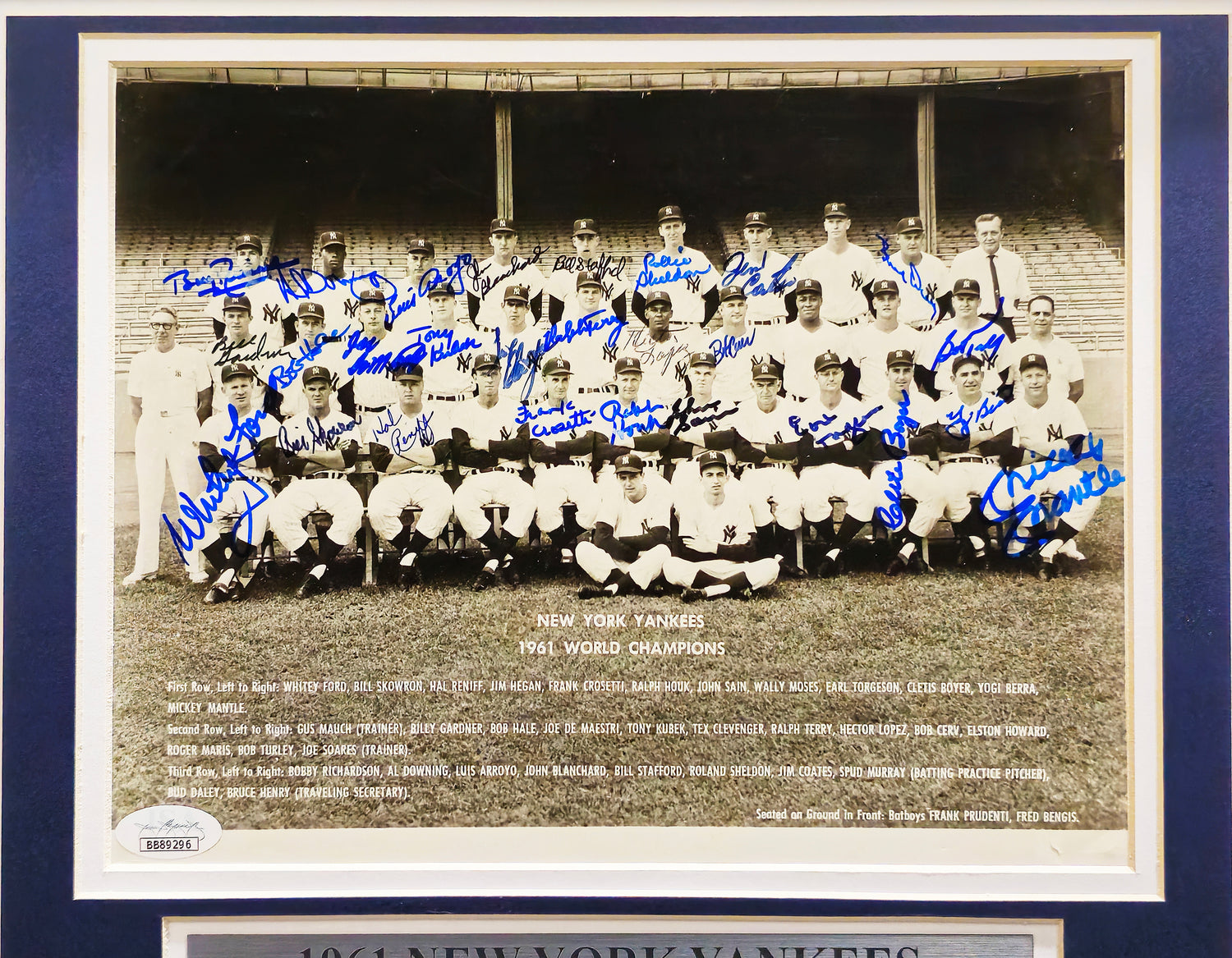 1961 World Series Champions New York Yankees Autographed Framed 8x10 Photo With 27 Signatures Including Mickey Mantle JSA #BB89296