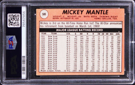 Yankees Mickey Mantle Signed 1969 Topps #500 Card Good + 2.5 Auto 8 PSA Slabbed