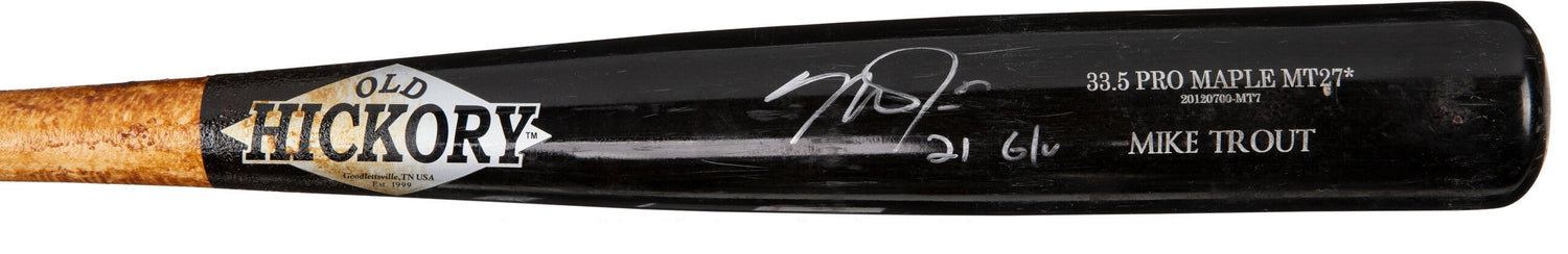 - Game-Used in 2021 — Old Hickory model MT27* used by Mike Trout during a live MLB game on April 28, 2021