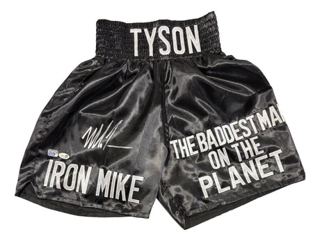 Very low stock (2 units)$309Unit price /UnavailableMike Tyson Signed Custom Black Baddest Man Boxing Trunks JSA QR Hologram