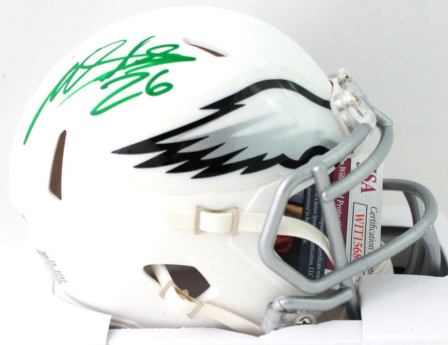 Miles Sanders Autographed Eagles Flat White Mini Helmet- JSA W Auth *Green