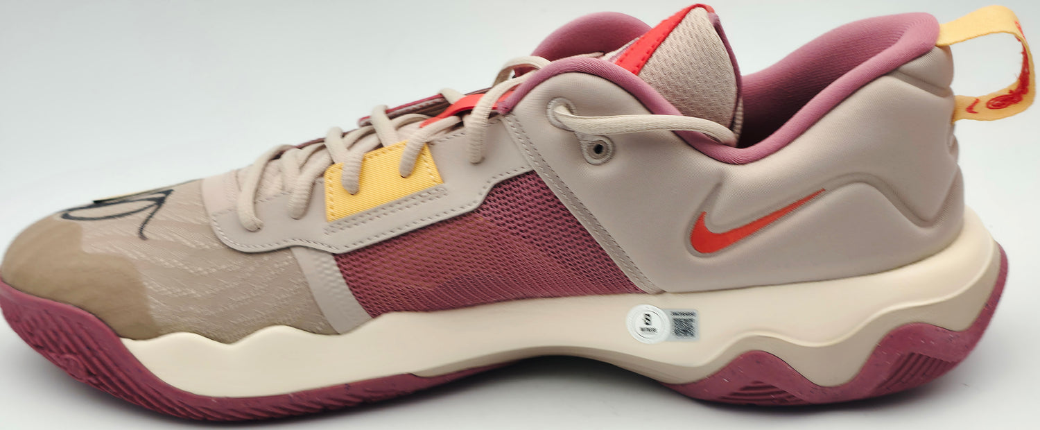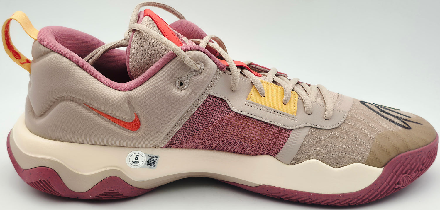 Own a rare piece of NBA history with this exclusive pair of FOSSIL STONE / ALABASTER / DESERT Nike IMMORTALITY 3 Shoes, personally hand-signed by Giannis Antetokounmpo. These size 17 shoes match the exact shoe size worn by the NBA superstar, making them a truly authentic representation of the Greek Freak’s on-court presence. A standout for any serious sports memorabilia collector, this item adds championship pedigree and MVP-level prestige to your collection. Each pair is certified authentic by Beckett Authentication Services (BAS) and includes their tamper-proof witness holograms to guarantee legitimacy.