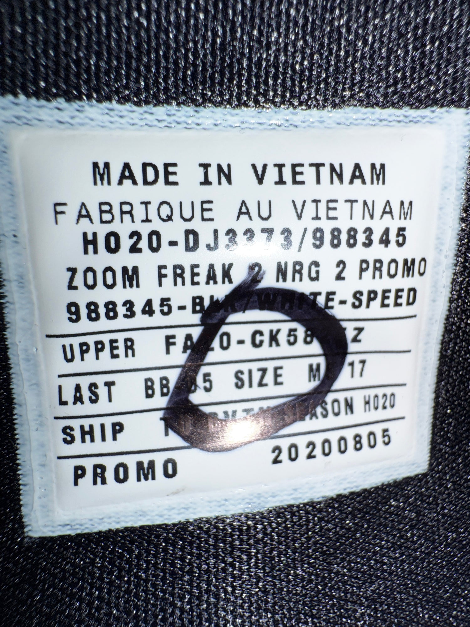 - Authentic 2021 Player Exclusive Nike Zoom Freak 2 NRG (Black/White/Speed) shoes — identical to the pair worn by Giannis Antetokounmpo