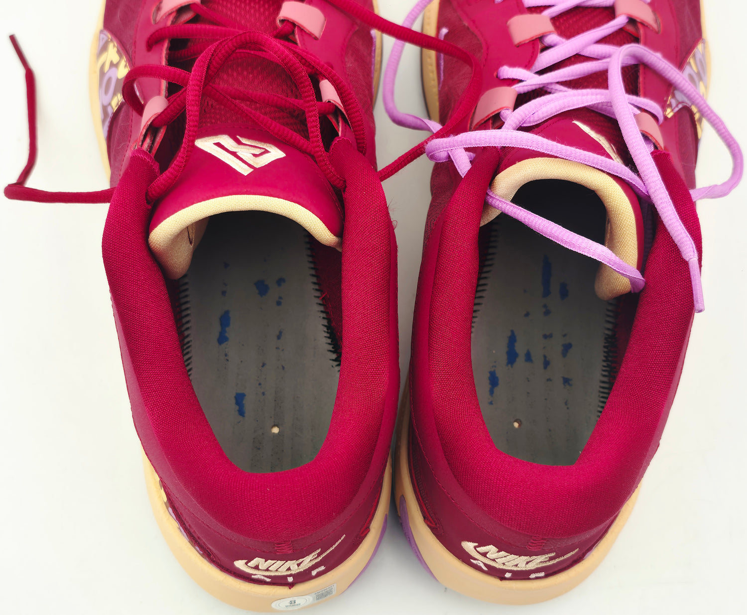 Own a rare piece of NBA history with this authentic pair of Crimson/Sand Nike Zoom Freak 5 Shoes hand-signed by Giannis Antetokounmpo, the 2-time NBA MVP and 2021 NBA Champion. These size 17 shoes aren't just any pair—they're the same size worn by Giannis himself, making them a true collector’s item for Milwaukee Bucks fans and serious basketball memorabilia enthusiasts alike. Each autographed shoe has been witnessed and certified by Beckett Authentication Services (BAS) and includes the original Nike shoe box, adding further value and authenticity to this exceptional display piece for your collection or memorabilia wall.