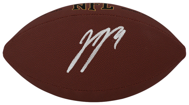 Own a piece of future football history with this J.J. McCarthy signed Wilson Super Grip full size NFL football—a must-have collectible for Michigan fans and NFL memorabilia collectors. As a standout quarterback for the University of Michigan, J.J. McCarthy helped lead the Wolverines to national prominence, and he's now poised for greatness at the professional level. Whether you're a college football enthusiast or an NFL draft follower, this signed football is a bold tribute to a rising star.
