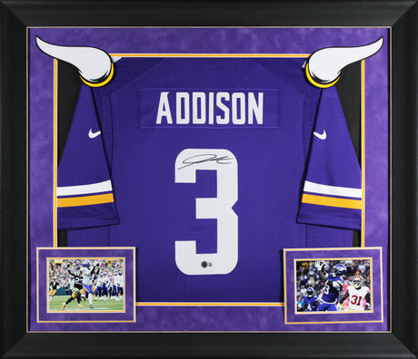 Vikings Jordan Addison Signed Purple Nike Limited Framed Jersey BAS Witnessed