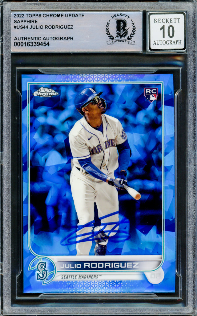Julio Rodriguez Autographed 2022 Topps Chrome Update Sapphire Rookie Card #US44 Seattle Mariners Auto Grade Gem Mint 10 Beckett BAS #16339454