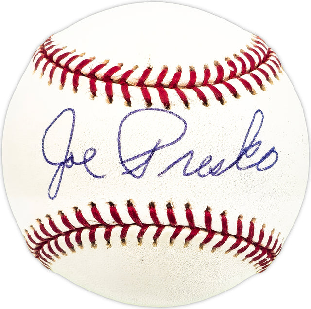 Own a piece of baseball history with this Official MLB Baseball hand-signed by Joe Presko. A standout pitcher from the 1950s, Presko played for the St. Louis Cardinals and Detroit Tigers, leaving his mark on Major League Baseball. This autographed collectible is a must-have for serious memorabilia enthusiasts and fans of baseball's golden era.
