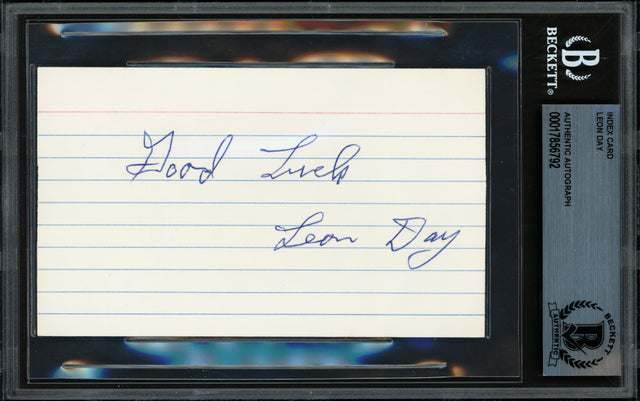 Leon Day Autographed 3x5 Index Card Negro Leagues "Good Luck" Beckett BAS #17856792