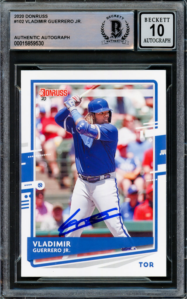 Vladimir Guerrero Jr. Autographed 2020 Donruss Card #102 Toronto Blue Jays Auto Grade Gem Mint 10 Hitting Beckett BAS #15859530