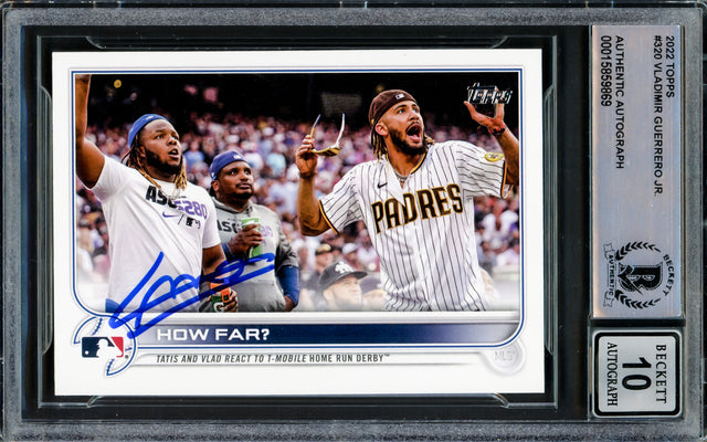 Vladimir Guerrero Jr. Autographed 2022 Topps Card #320 Toronto Blue Jays Auto Grade Gem Mint 10 Beckett BAS Stock #218657 is backordered and will ship as soon as it is back in stock.