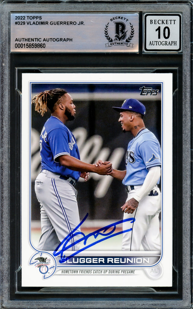Vladimir Guerrero Jr. Autographed 2022 Topps Card #329 Toronto Blue Jays Auto Grade Gem Mint 10 Beckett BAS Stock #218656