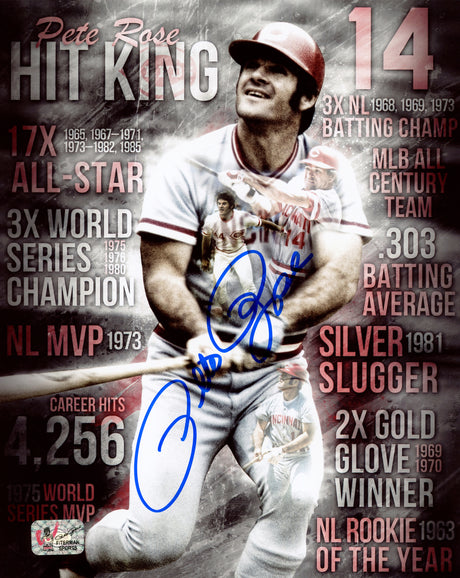 - Pete Rose Autographed 8x10 Photo Cincinnati Reds Hit King PR Holo Stock #229037 $69Unit price /Unavailable
