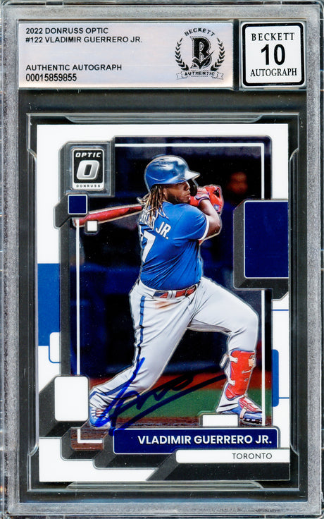 - Vladimir Guerrero Jr. Autographed 2022 Donruss Card #113 Toronto Blue Jays Beckett BAS #15866549 Very low stock (1 unit)$79Unit price /Unavailable