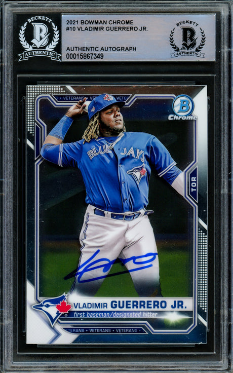 - Vladimir Guerrero Jr. Autographed 2022 Bowman Card #54 Toronto Blue Jays Beckett BAS #15866546 Very low stock (1 unit)$79Unit price /Unavailable