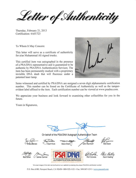 Very low stock (1 unit)$4,339Unit price /UnavailableMuhammad Ali Authentic Signed Ali Boxing Trunks Ali Hologram & PSA ITP #3A74682